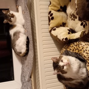 - beide Kater lieben sich und liegen öfter zusammen in ihrem Katzenbett