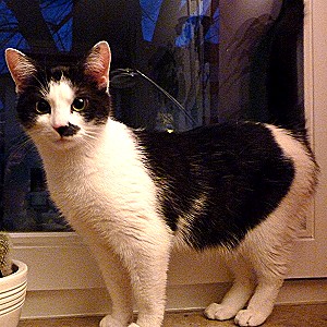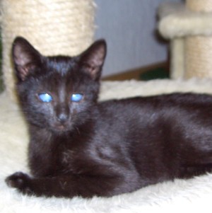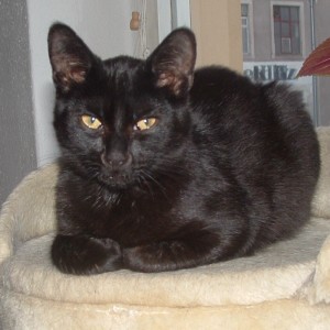 |  | Blacky ist ein schöner, großer schwarzer Kater geworden und er lebt als Einzelkatze bei seinen Menschen.