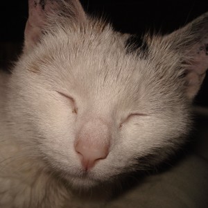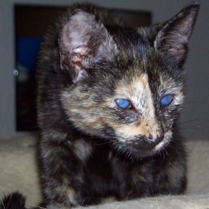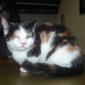 Ihr eines Auge war vermutlich durch unbehandelten Katzenschnupfen völlig zertört.